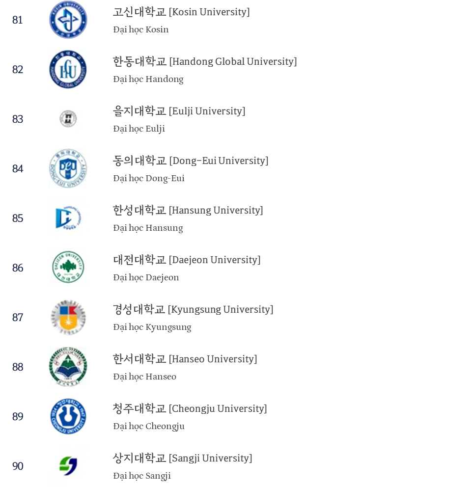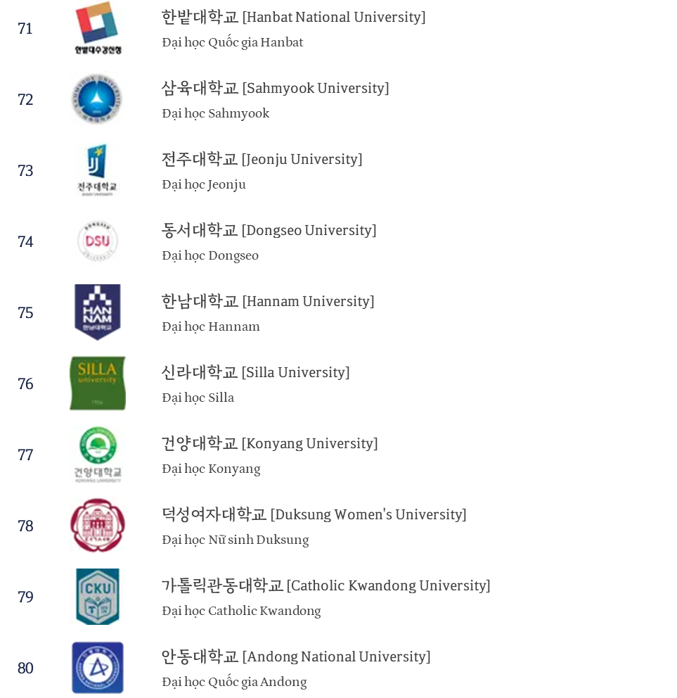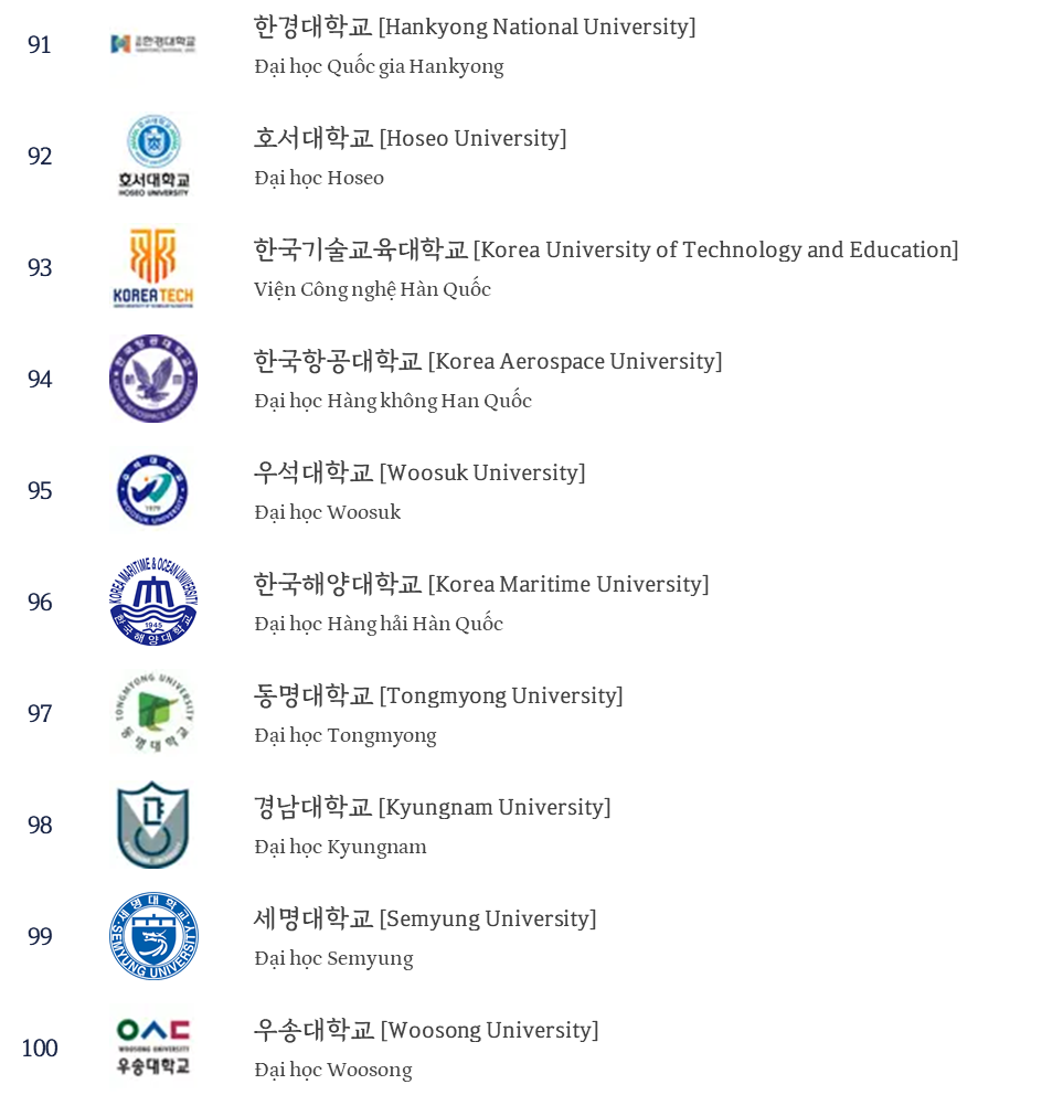 Bạn hãy tham khảo danh sách TOP 100 các trường đại học Hàn Quốc dưới đây để chọn cho mình ngôi trường đáng mơ ước nhé!