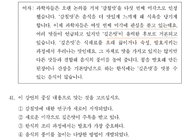 (이 강연의 중심 생각으로 맞는 것을 고르십시오)